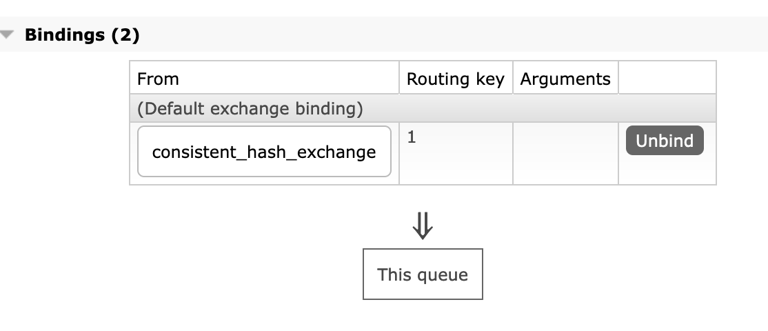 When a queue is bound to a Consistent Hash exchange, the binding key is a number-as-a-string which indicates the binding weight: the number of buckets (sections of the range) that will be associated with the target queue.