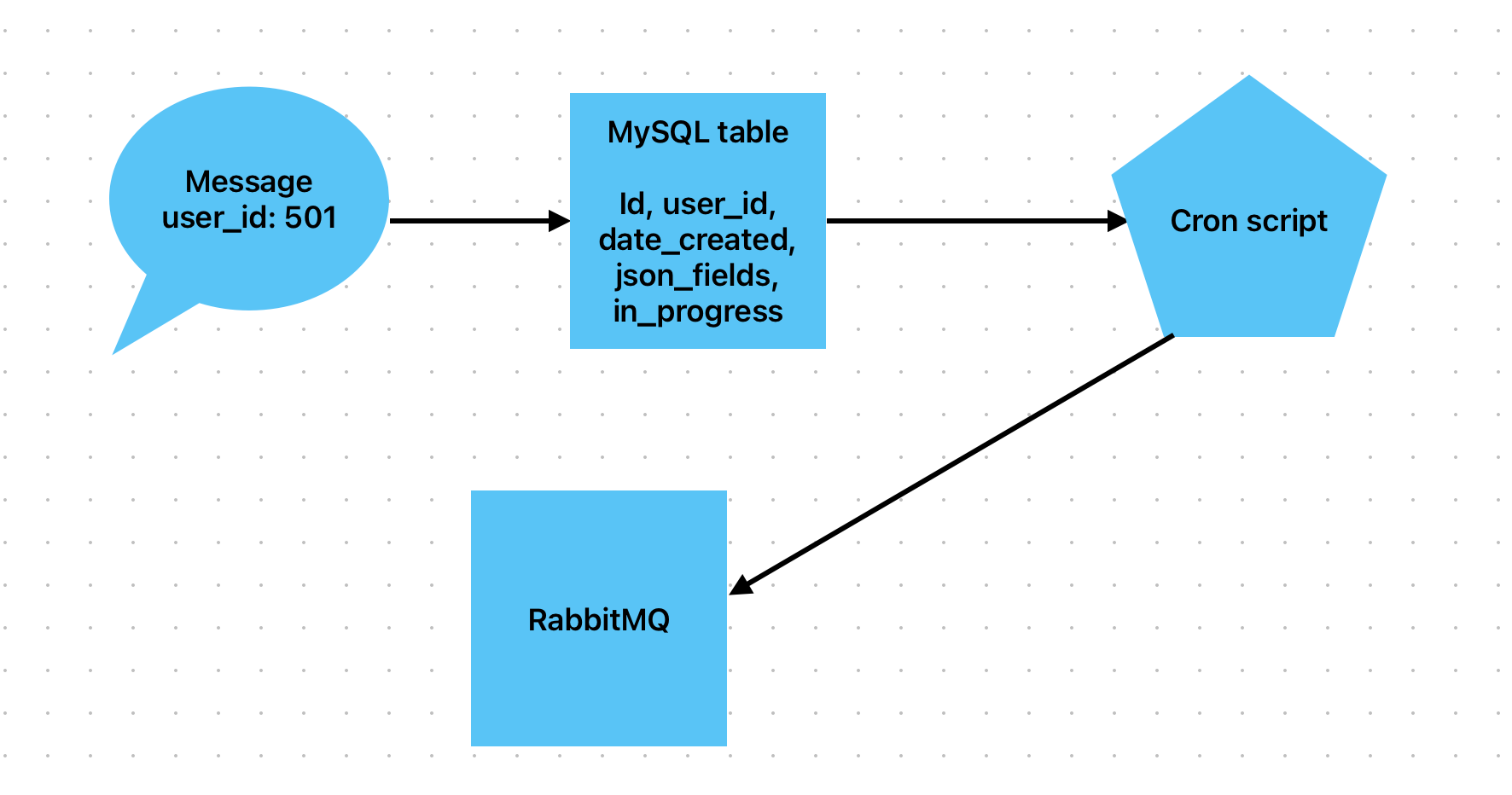 Send a message to RabbitMQ with this row id (minimum_id), user_id and json_fields